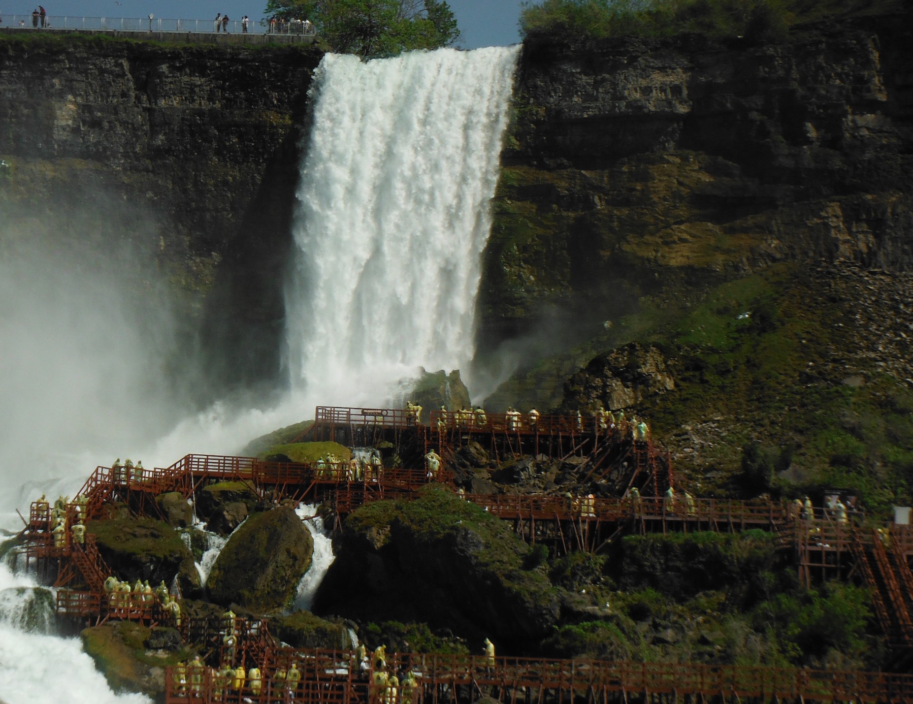 We started Tuesday at the Visitor’s Center where we picked up our Adventure Passes (conveniently attached to lanyards) that we had purchased online and selected our days and times for each activity. We had chosen the Classic package, which included a boat ride to the falls, a self-guided tour of caves dug under the falls, a 4D retelling of the history of the falls, a White Water Walk and two-day bus passes. After inquiring into how long each took, we decided to start with Niagara’s Fury, the 4D experience and the Journey Behind the Falls that morning and scheduled the boat ride for after lunch. We decided to postpone the White Water Walk to the next day.