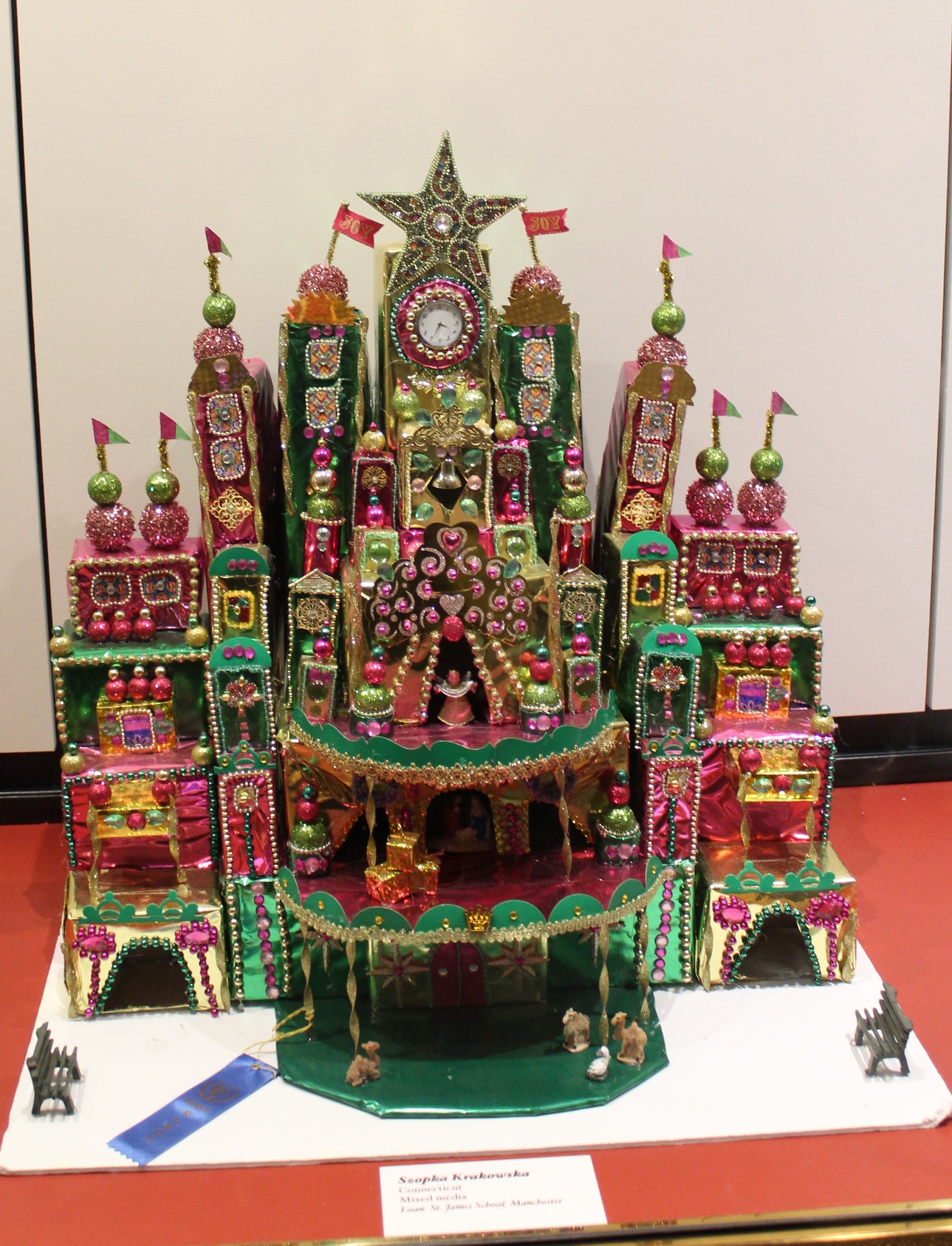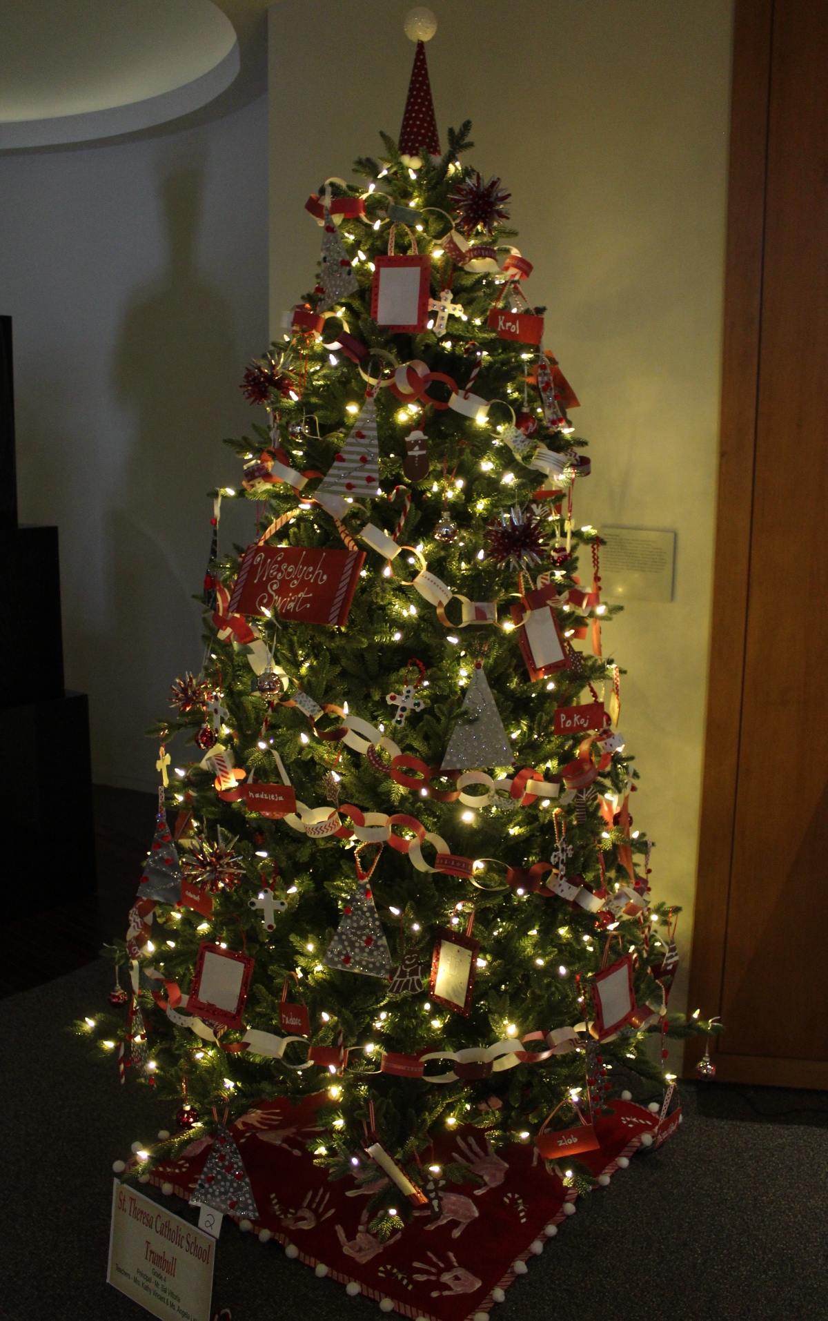 In addition, there are two dozen Christmas trees decorated by local elementary schools with the theme, Christmas in Poland. Visitors are invited to vote for their favorite to determine the “People’s Choice Award.” Dozens of handmade ornaments adorn each tree. Some also created szopka for under the tree and included information explaining the reason for some of the decorations. (For example, a spider ornament is included to commemorate the spider said to weave a blanket for the baby Jesus.)