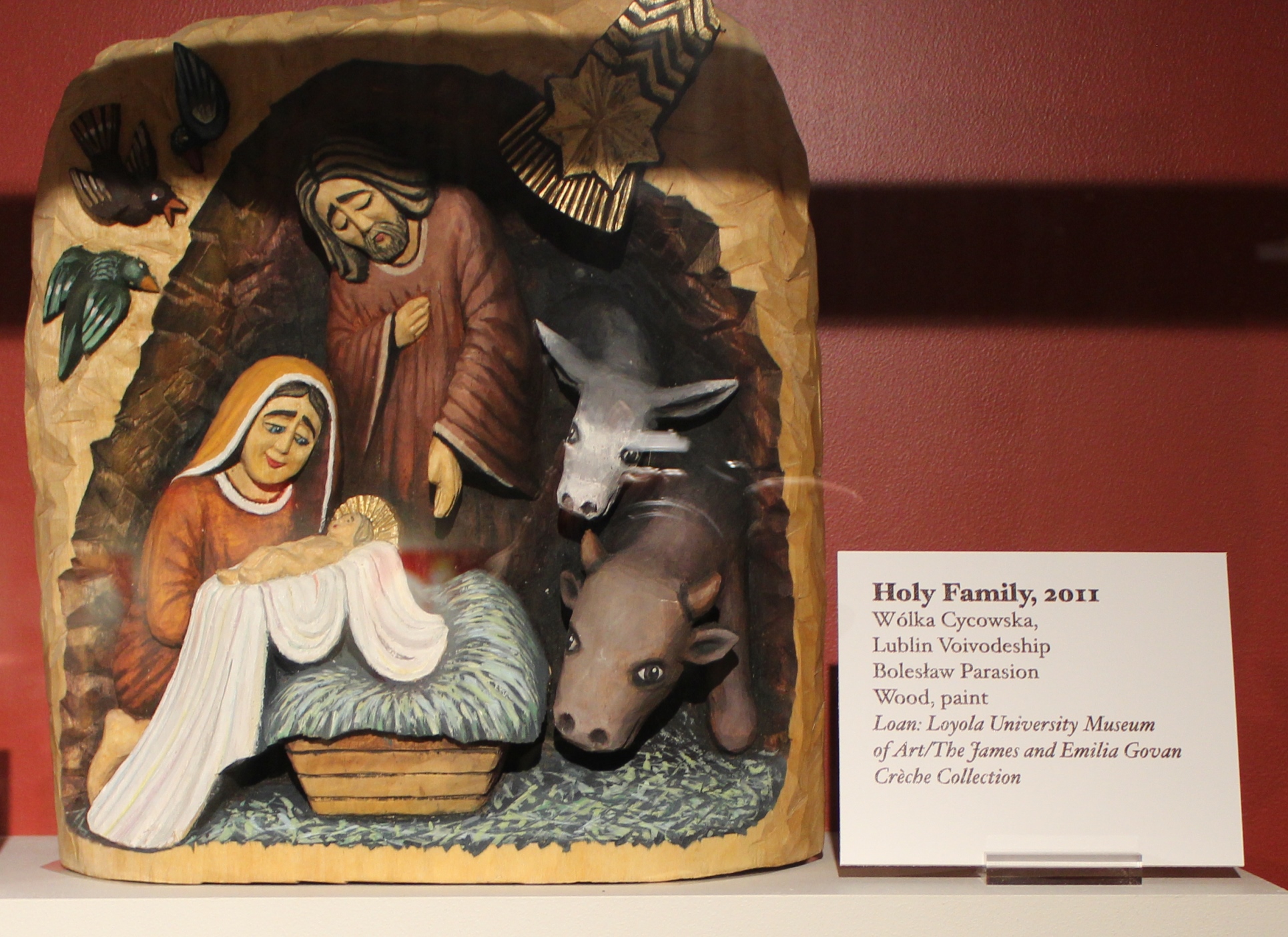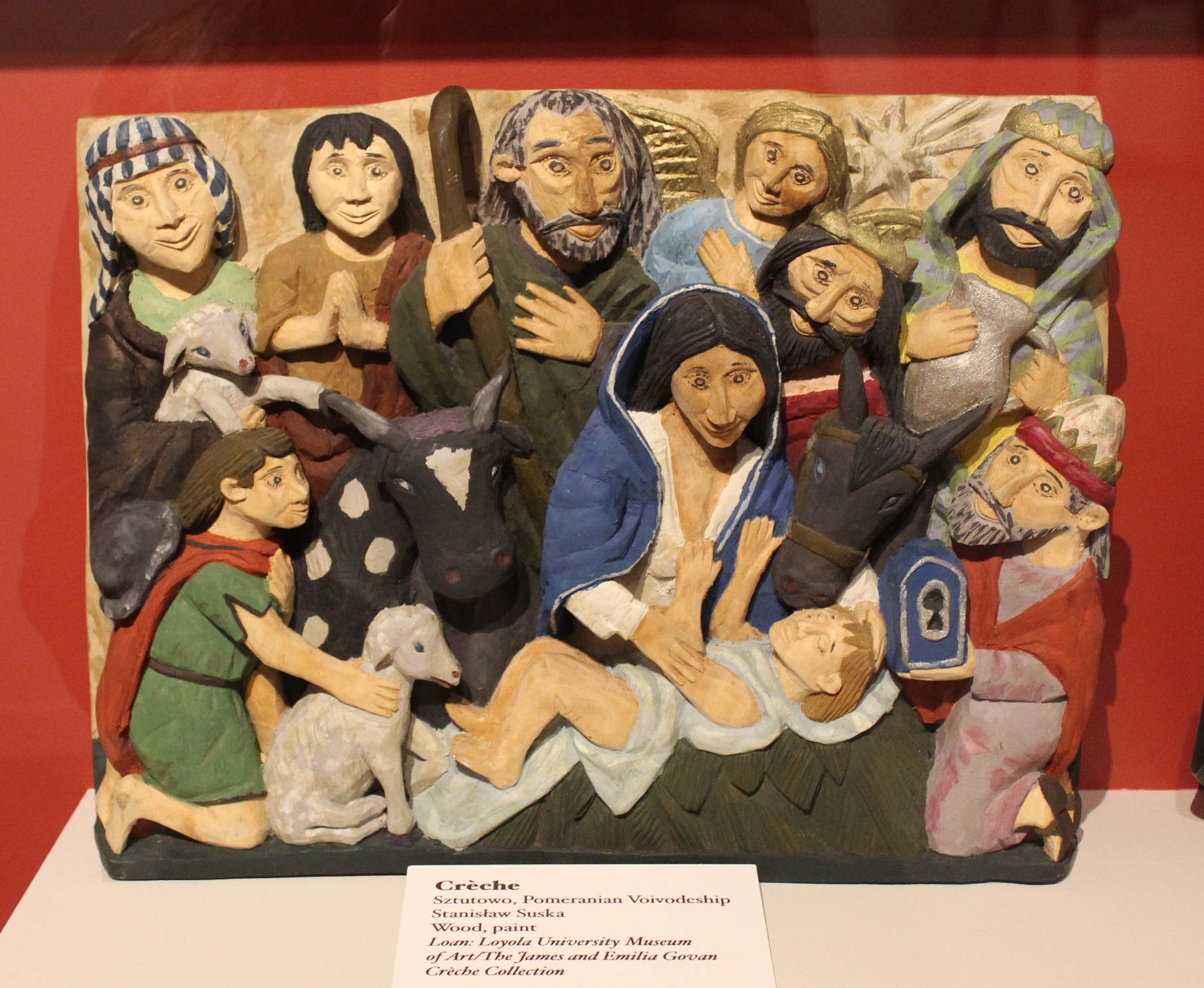 We learned that in Poland, festivities begin December 24 with Christmas Eve dinner, called wigilia (no meat aside from fish is served at this meal; this would sadden many of our relatives) and continue until February 2, with the feast of Candlemas. People sing kolêdy, or carols and create nativity scenes called szopki. A number of examples of szopka are on display, both from their collection and on loan from museums around the world.