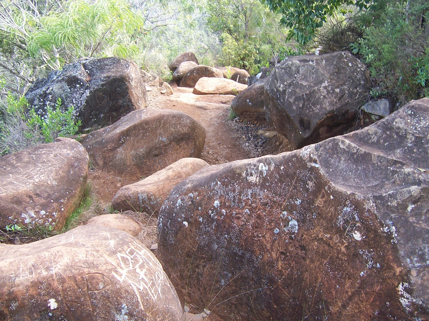 beneath low-hanging branches to a spot where we left the kayaks and started our hike through the rain forest to the Secret Falls, where we took a break and snacked on mangoes and chocolate! Our knowledgeable